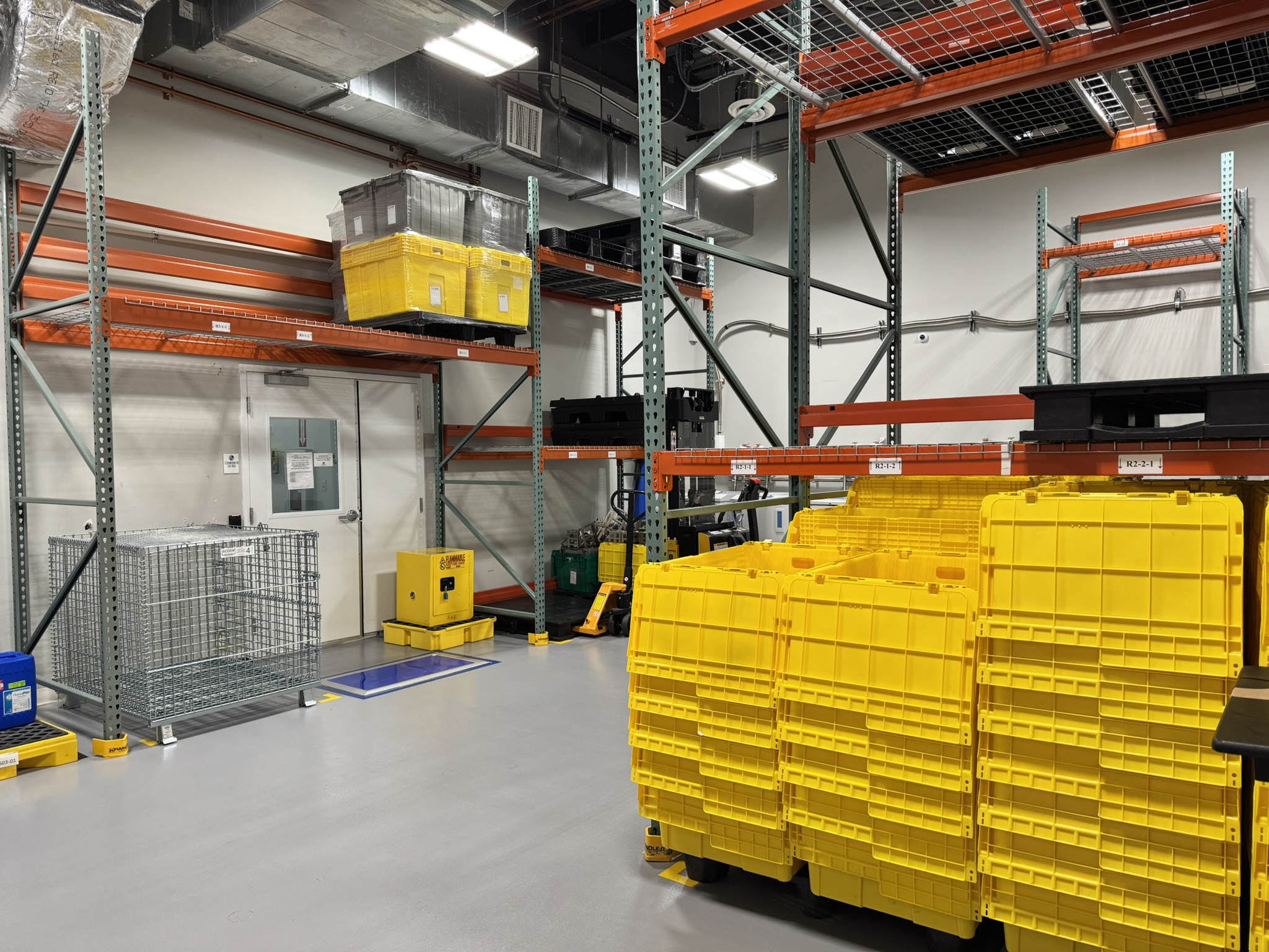 A staffed shipping and receiving area with segregated waste handling ensures smooth, compliant operations, while breakroom and local amenities support day-to-day team needs.