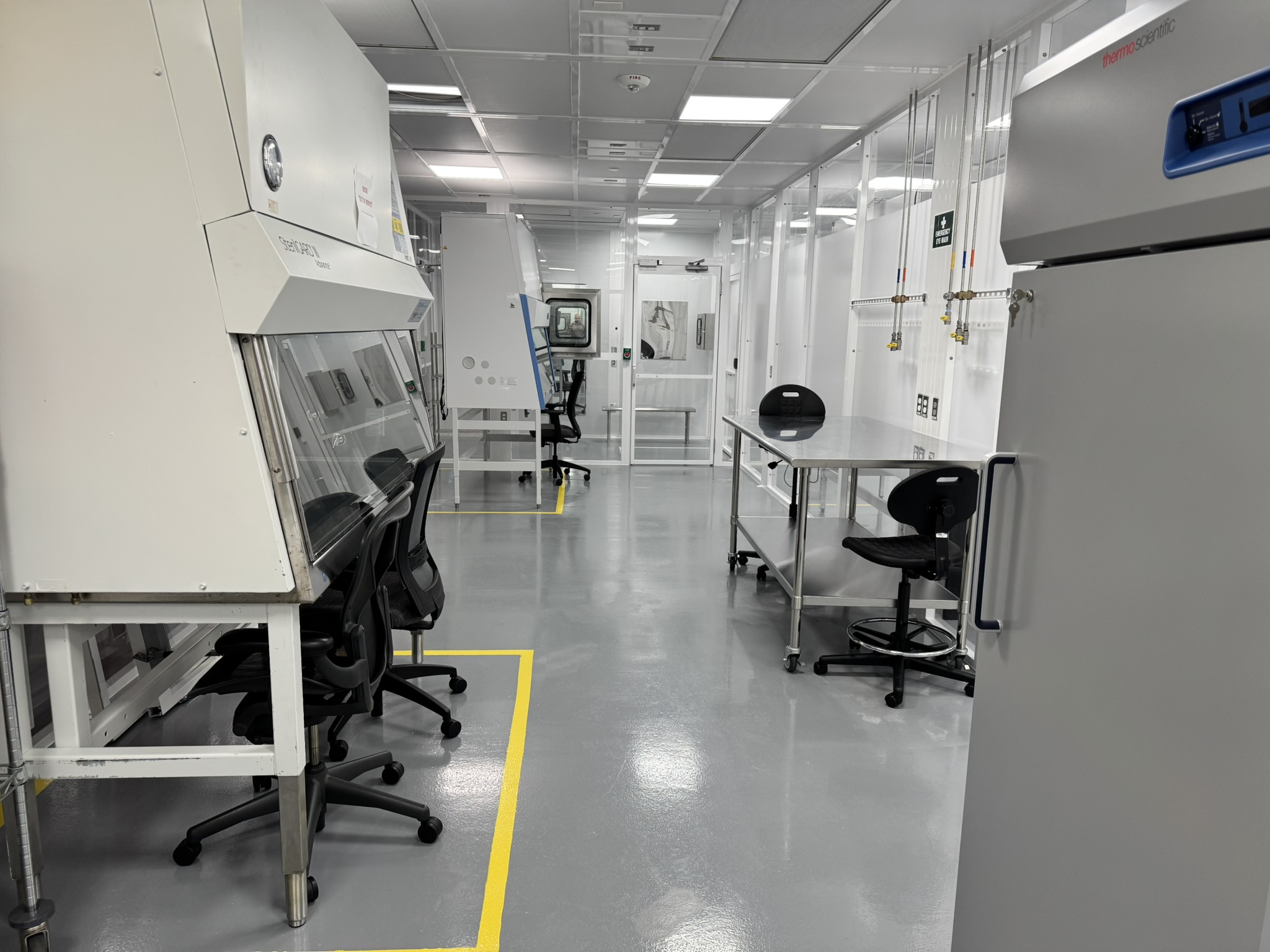 The facility features eight ISO 7/8 cleanrooms, card-access client offices, GMP warehousing and amenities designed for focus and flexibility.